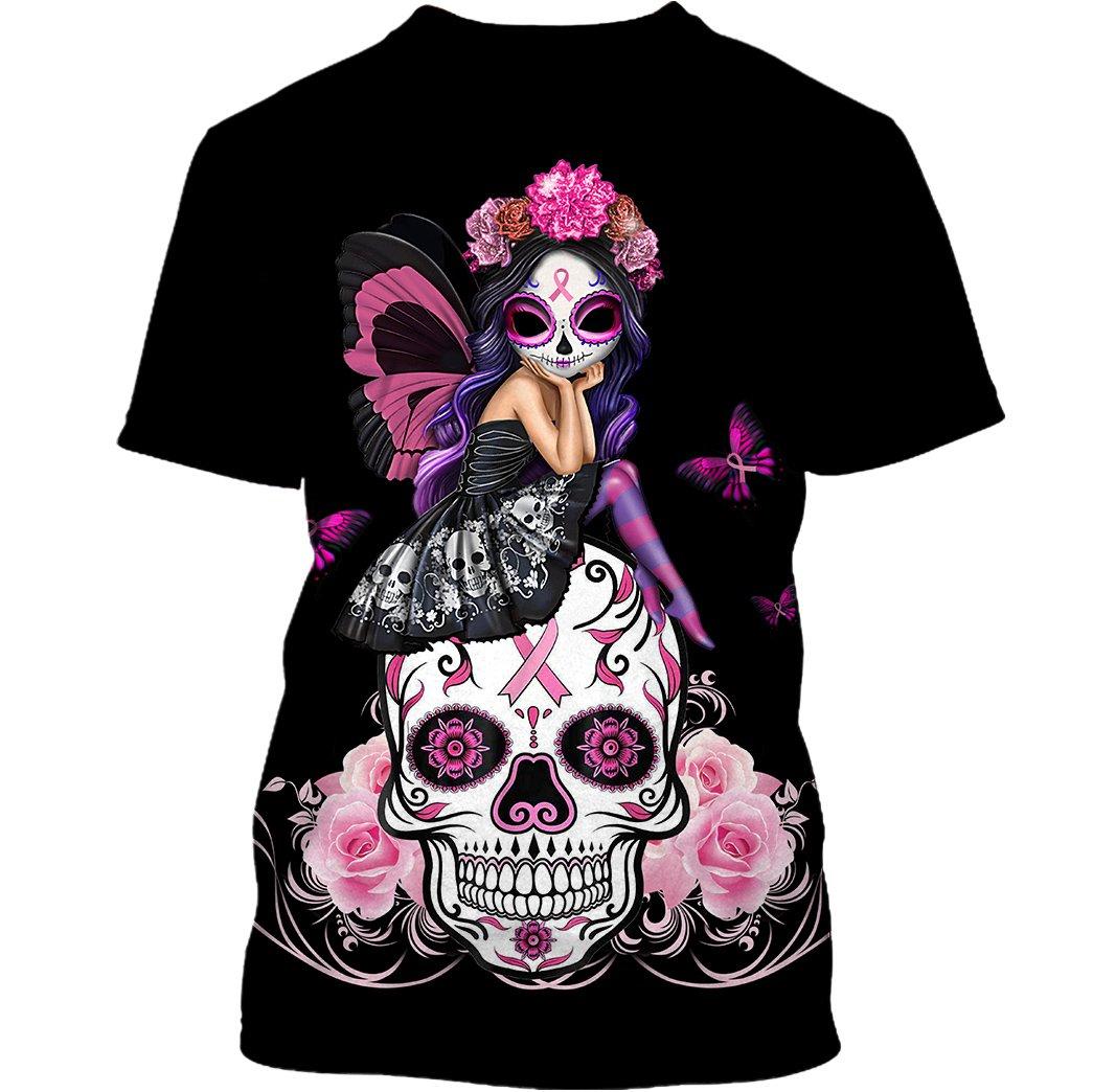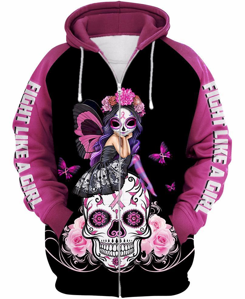 Skull Pink Warrior Fight Like A Girl Breast Cancer Awareness 3D Hoodie