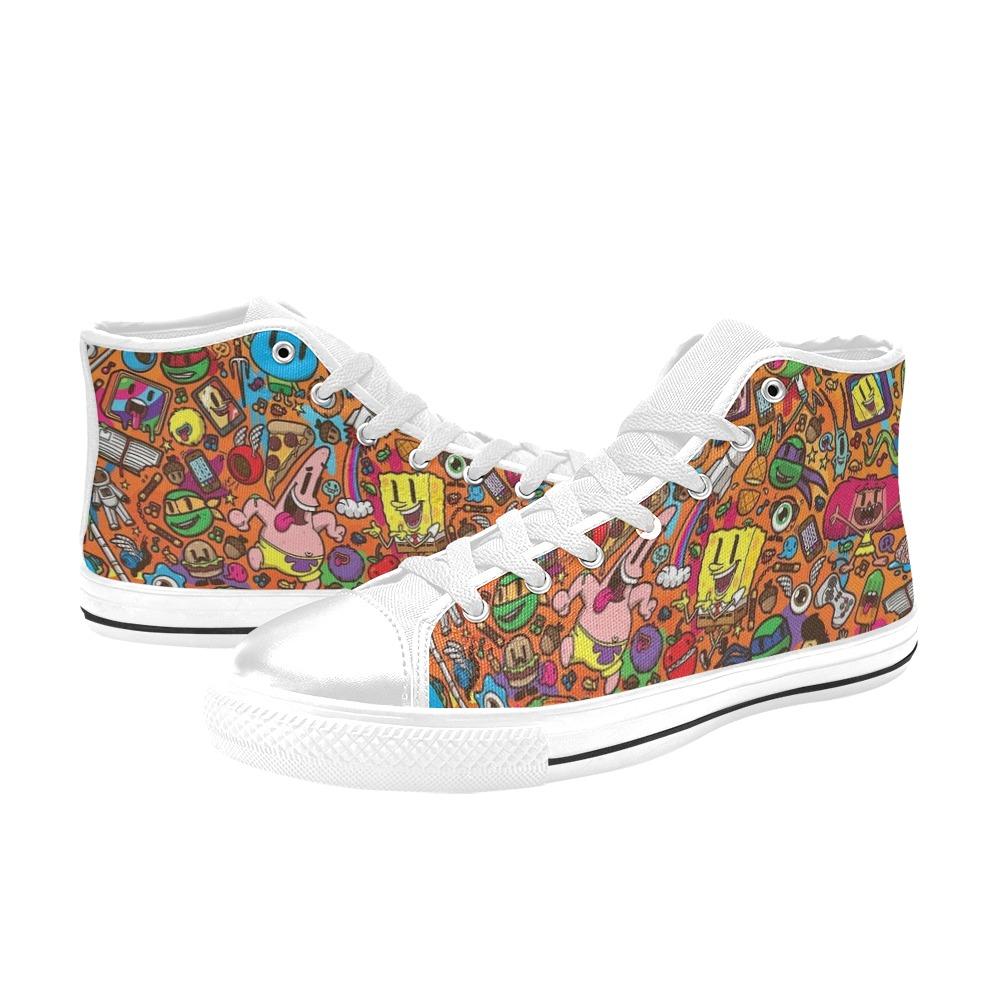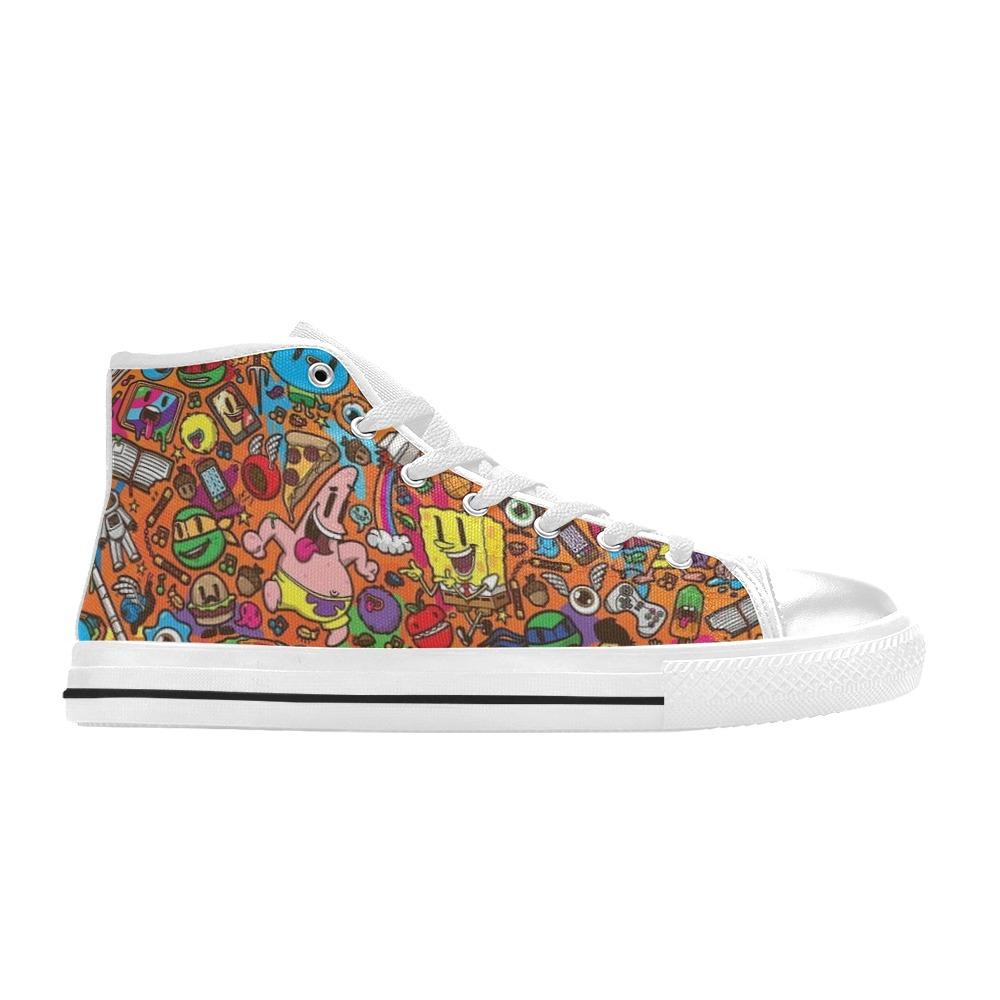Spongebob And Patrick High Top Canvas Shoes For Kid (Model 017)