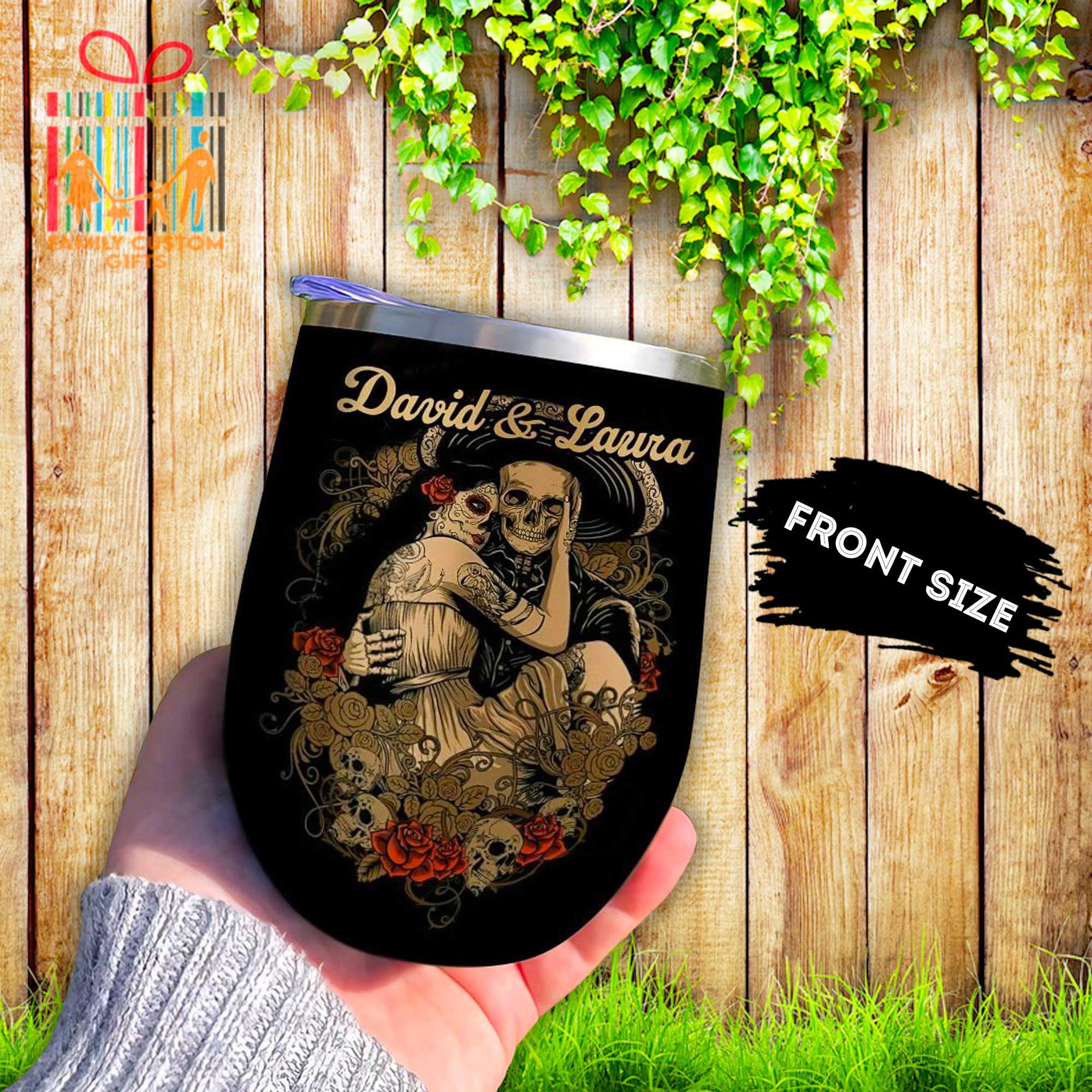 Sugar Skull Couple Custom Tumbler Cups For Her & Him Personalized Stainless Steel Wine Glasses
