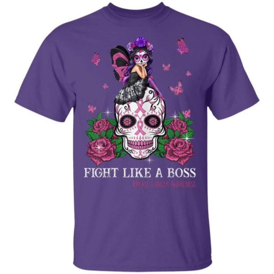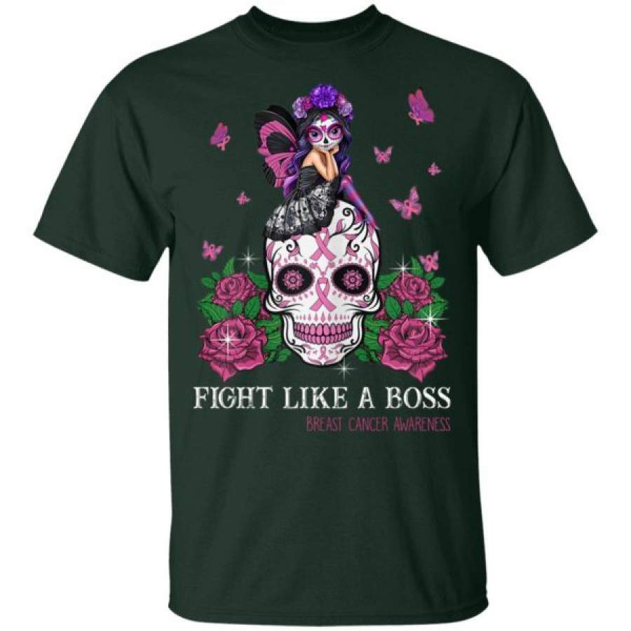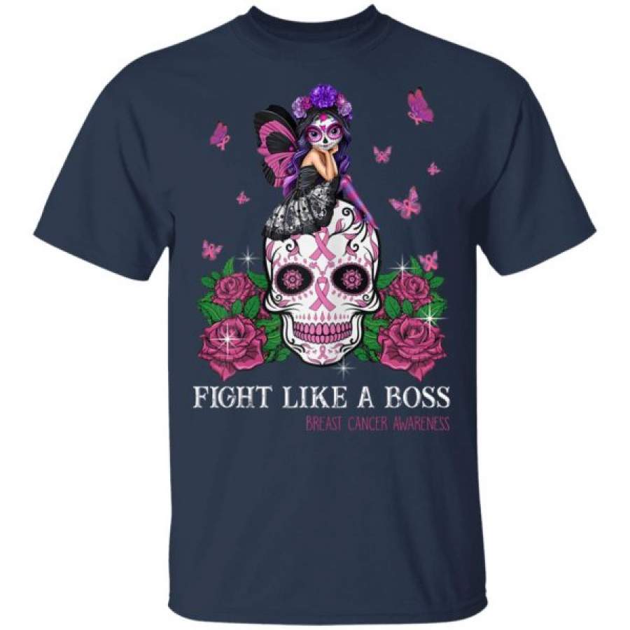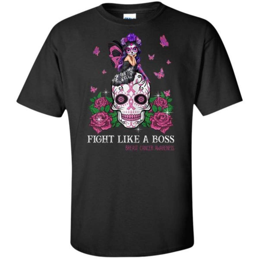 Sugar Skull Fight Like a Boss Breast Cancer Awareness Shirts