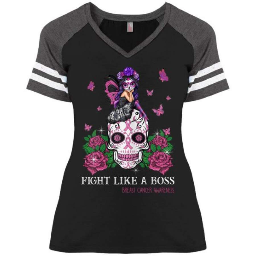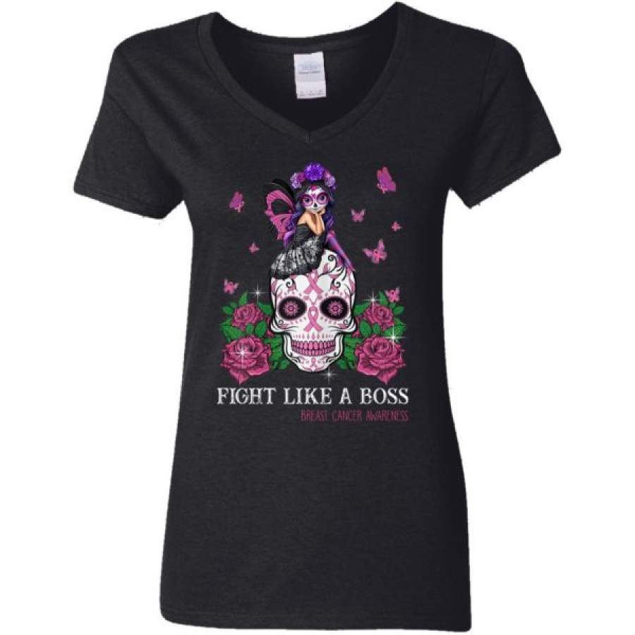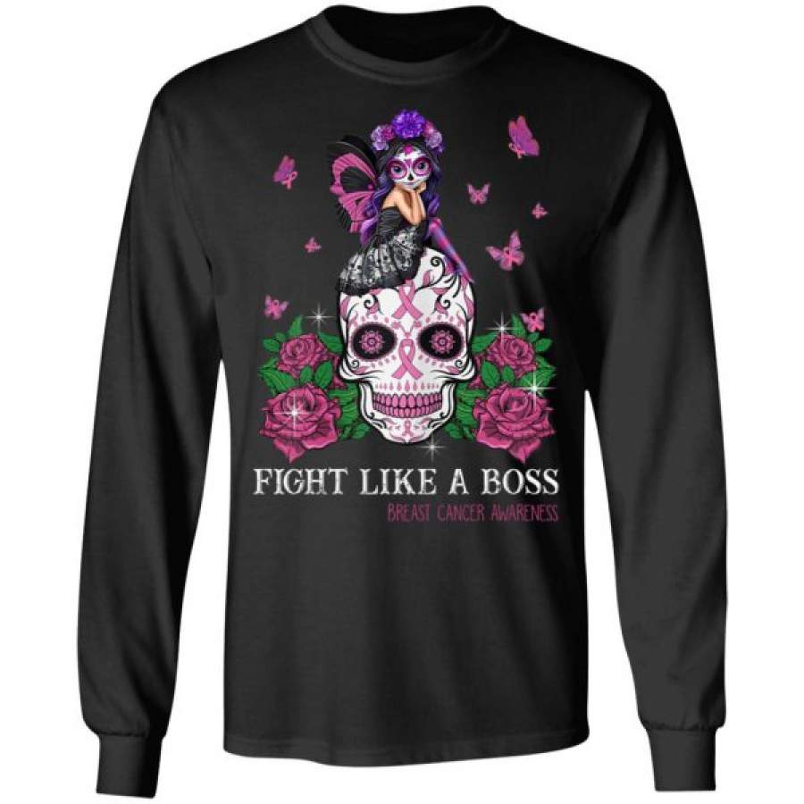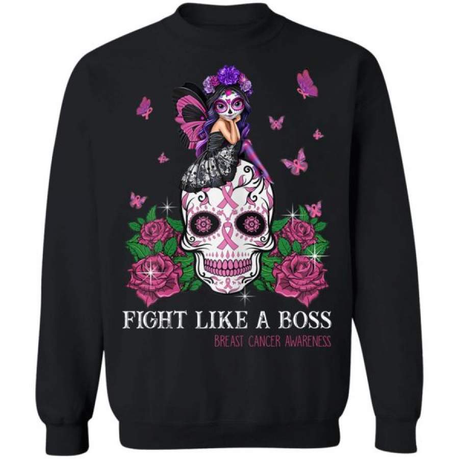 Sugar Skull Fight Like a Boss Breast Cancer Awareness Shirts