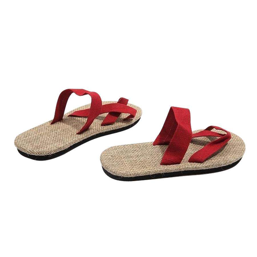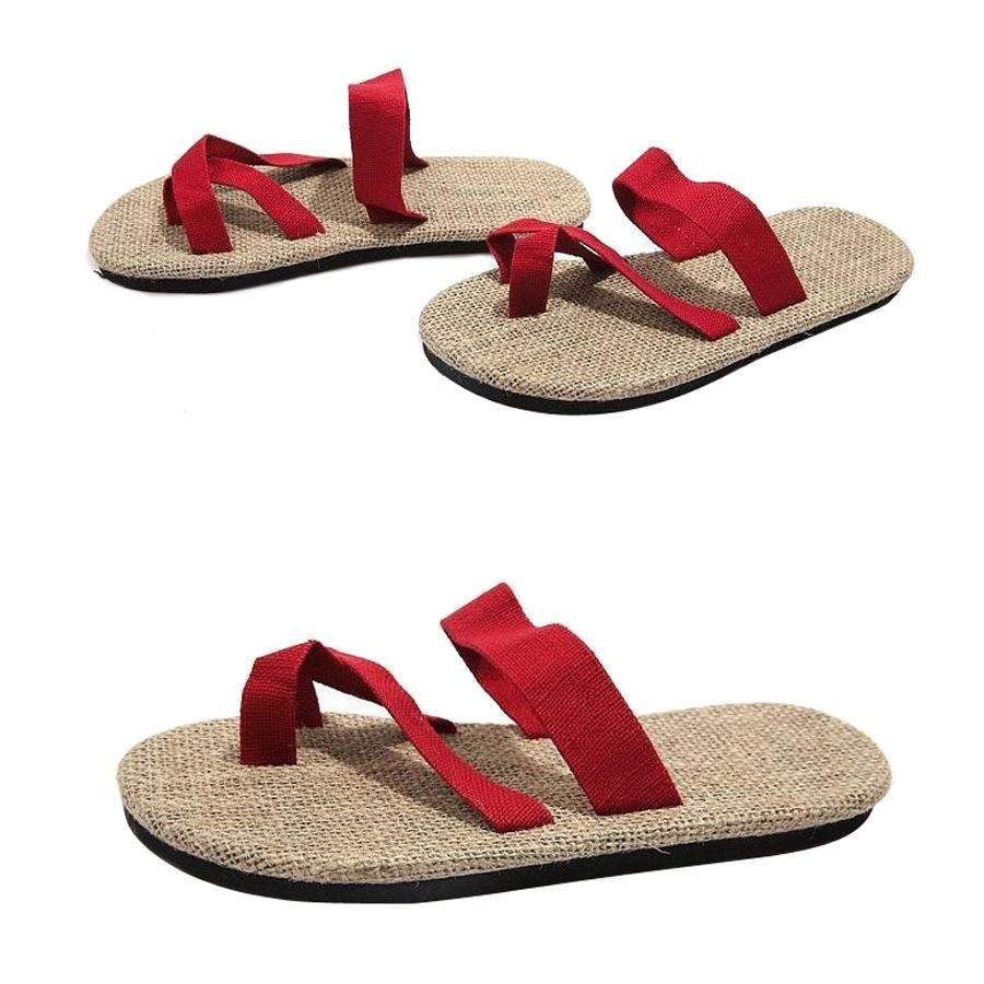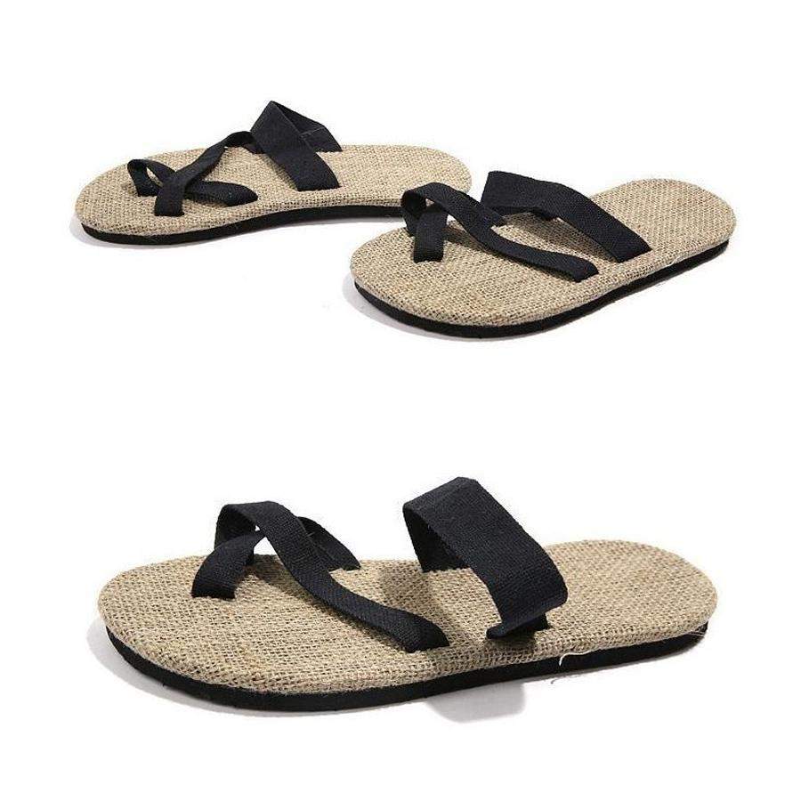 Summer Couples Soled Shoes Straw Flax Linen Lover Men Women Unisex Beach Slipper Herringbone Toe Sandals Home Slipper