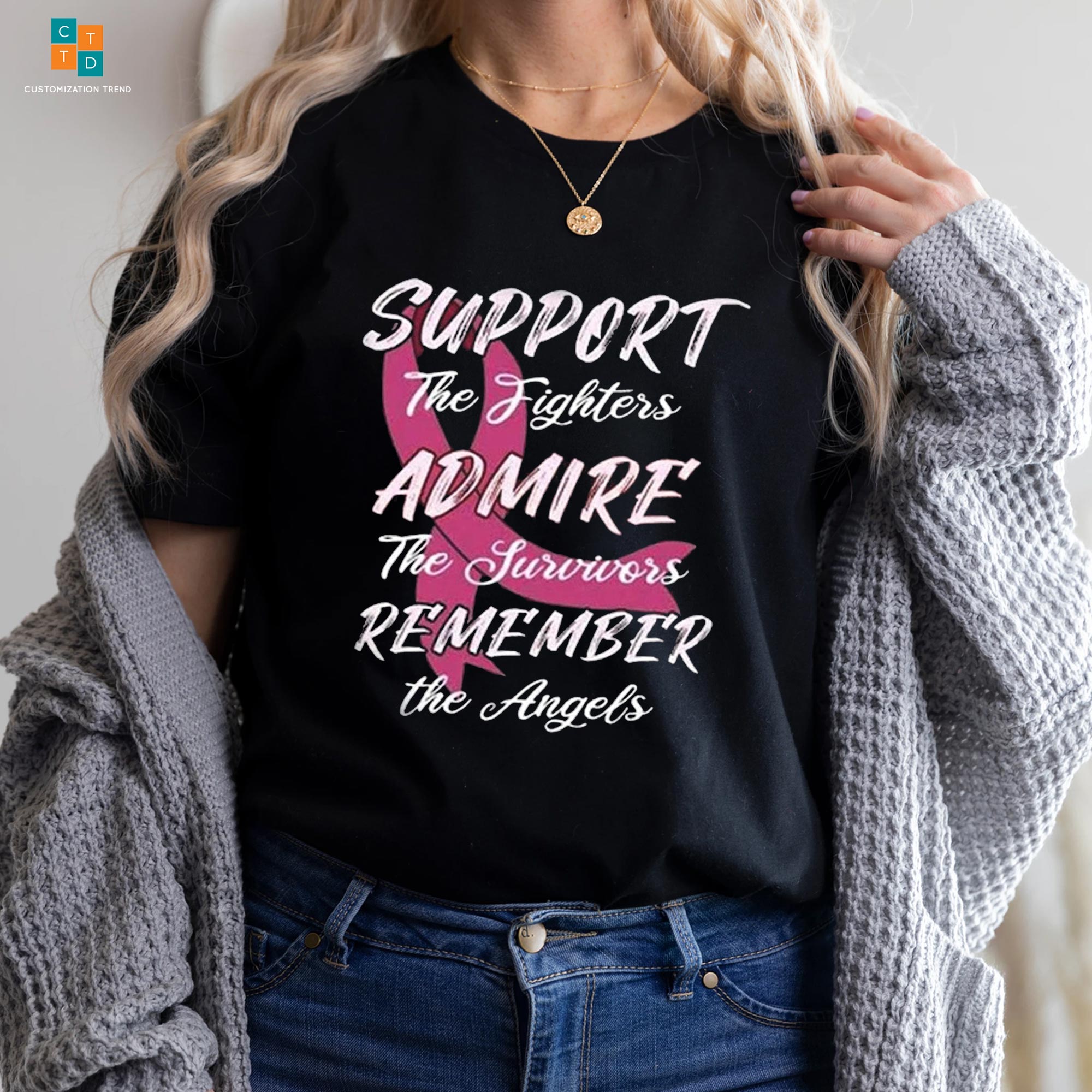 Support The Fighter Admire Breast Cancer Awareness Hoodie, Shirt