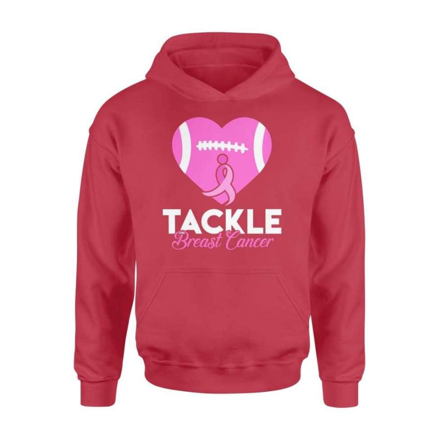 Tackle Heart Football Pink Ribbon Breast Cancer Awareness Month Clothing – Hoodie
