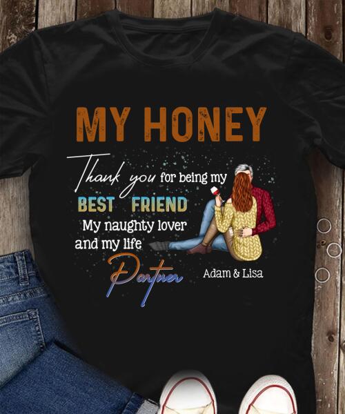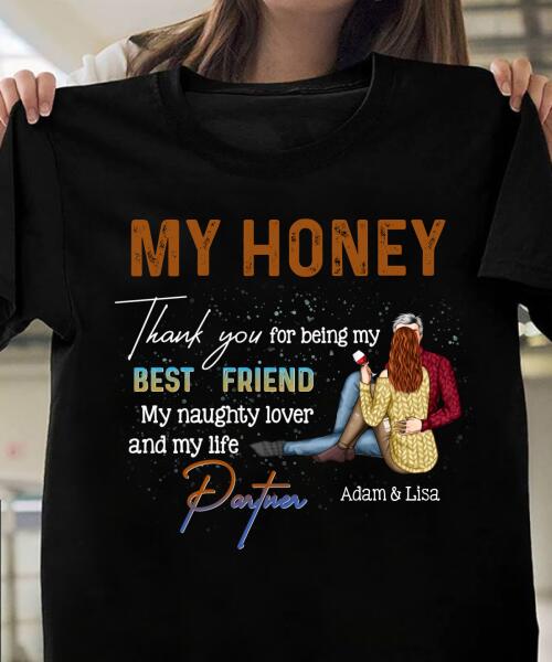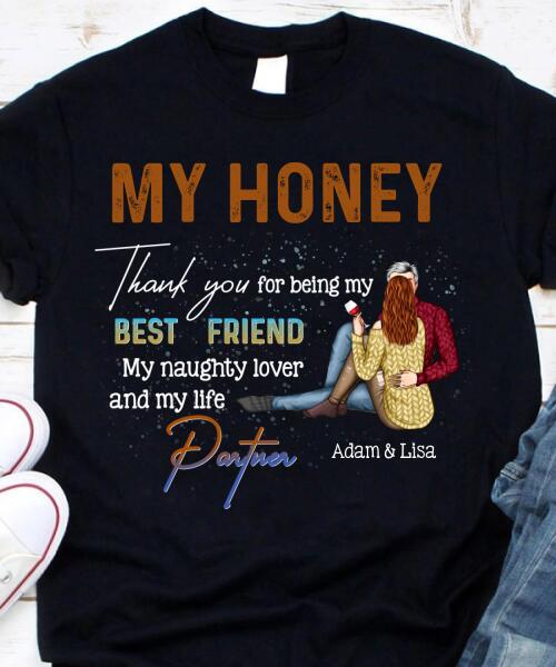 Thank You For Being My Life Partner – Personalized Black T-Shirt – Unique Valentine Gift For Couple