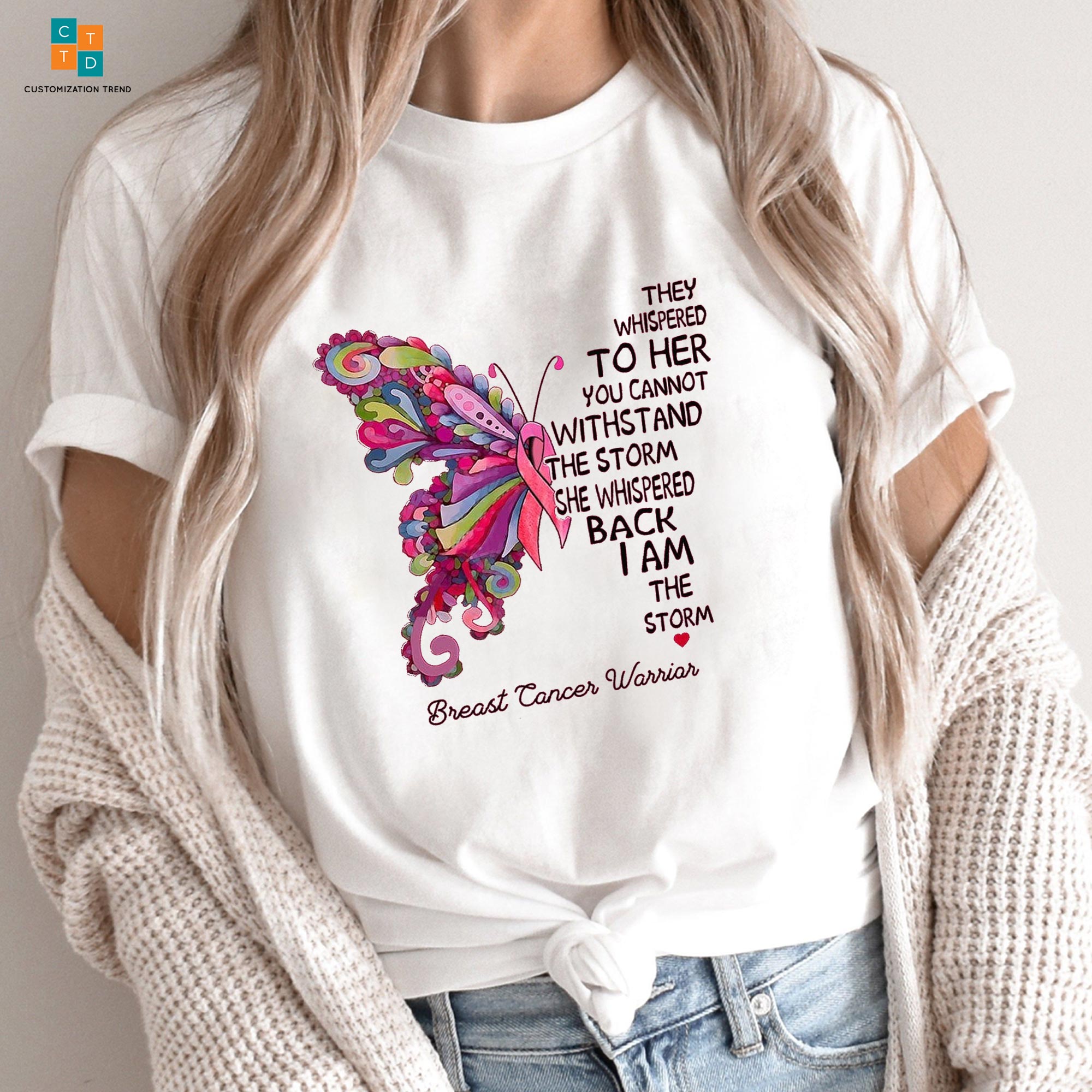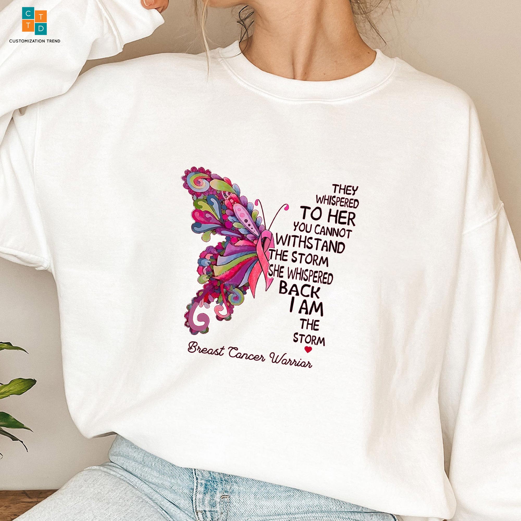 They Whispered To Her You Cannot Withstand Butterfly Breast Cancer Awareness Hoodie, Shirt