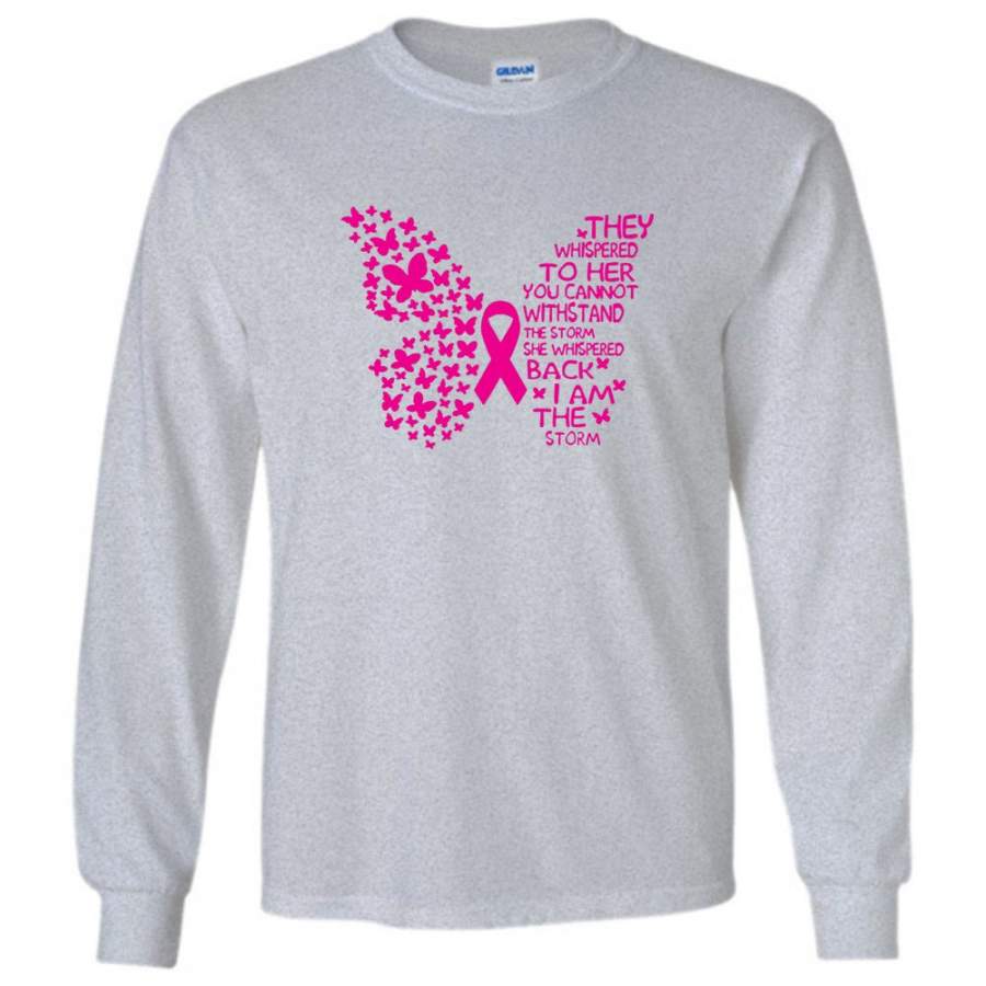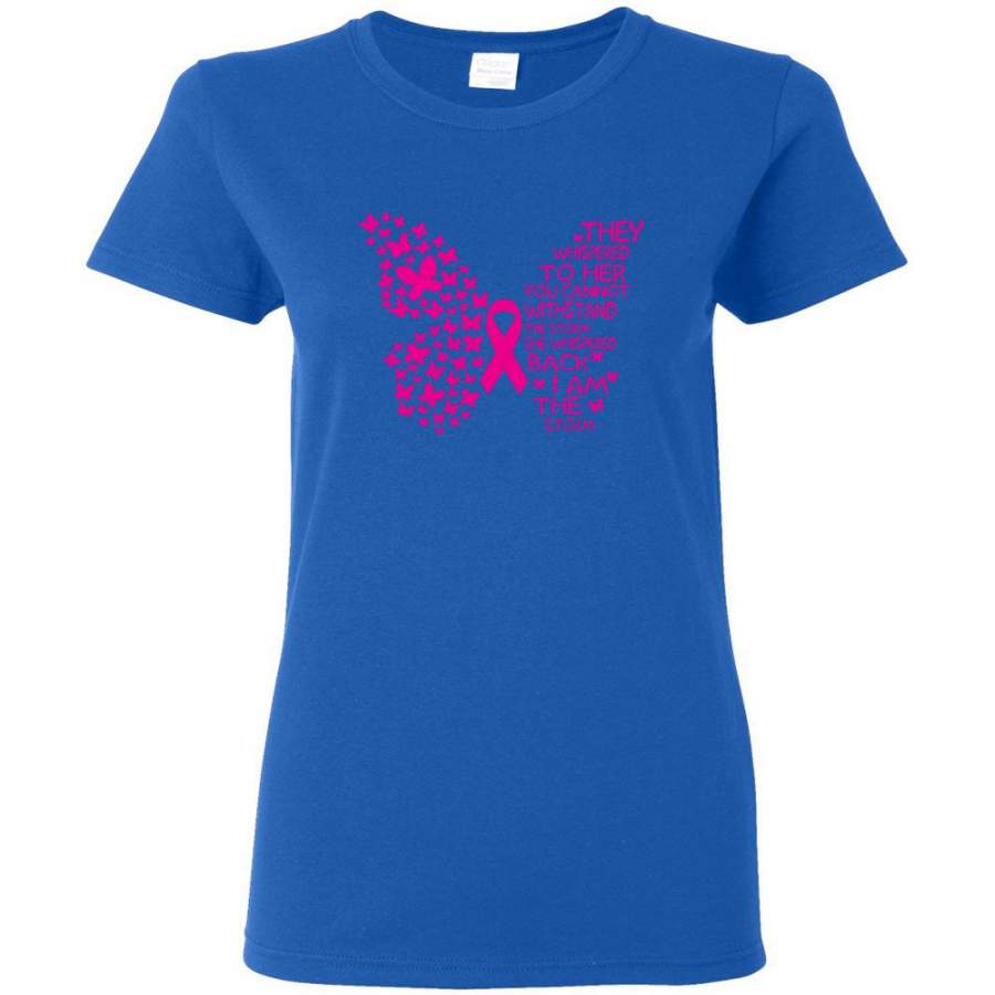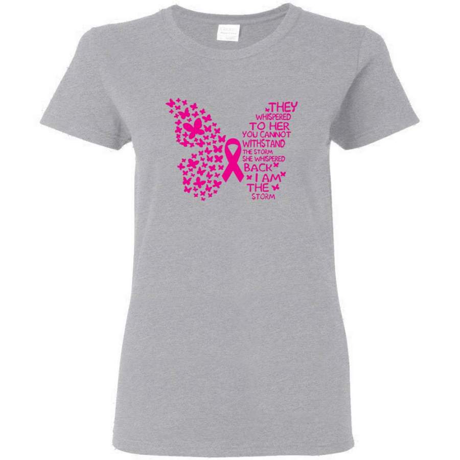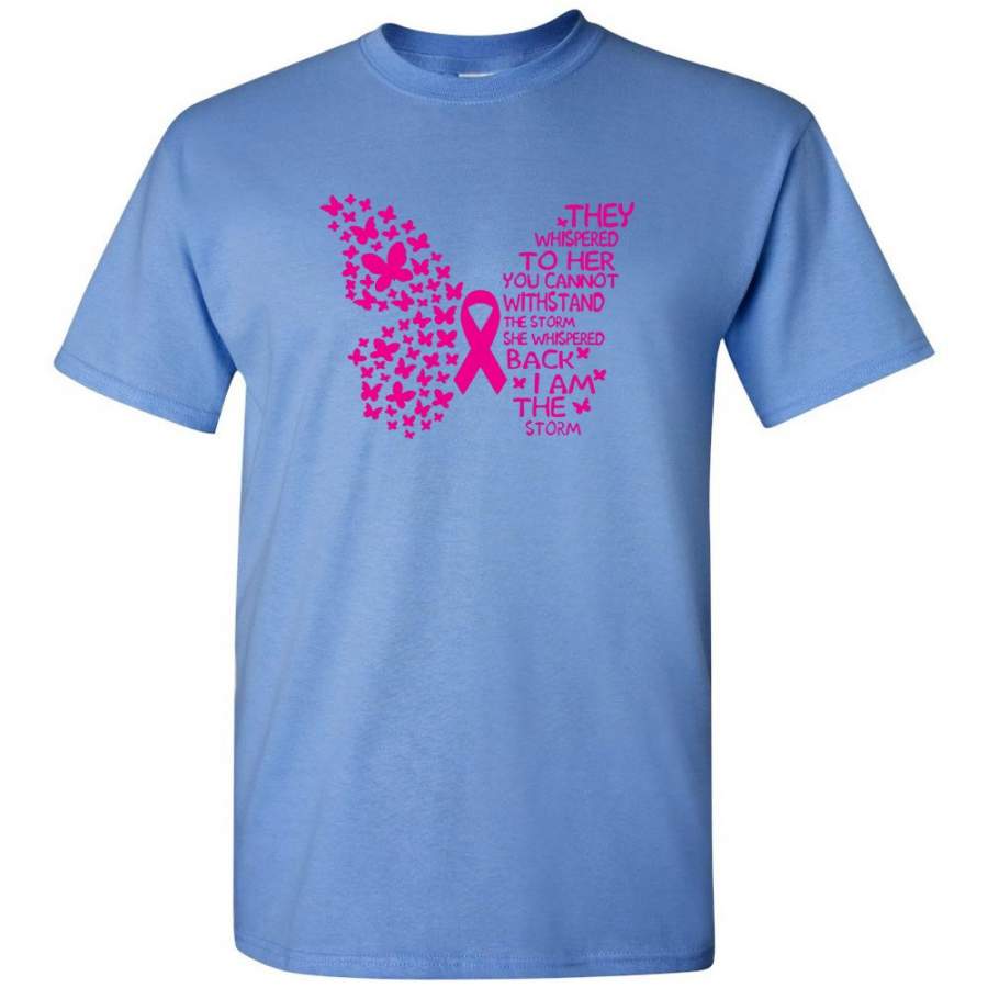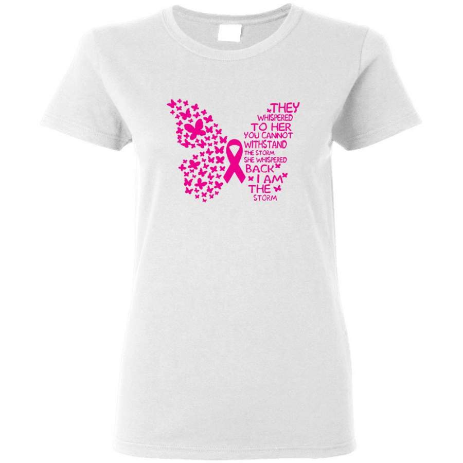 They Whispered To Her You Cannot Withstand The Storm Breast Cancer Awareness Butterfly T Shirt