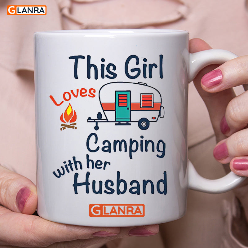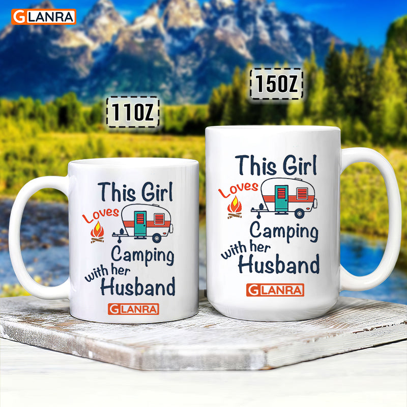 This Girl Loves Camping With Her Husband Mug, Camping Mug, Couple Mug, Wife Mug, Husband Mug, Ceramic Mug, Coffee Cup