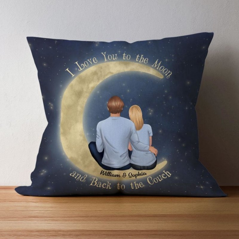 To The Moon And Back To The Couch Personalized Couple Pillow