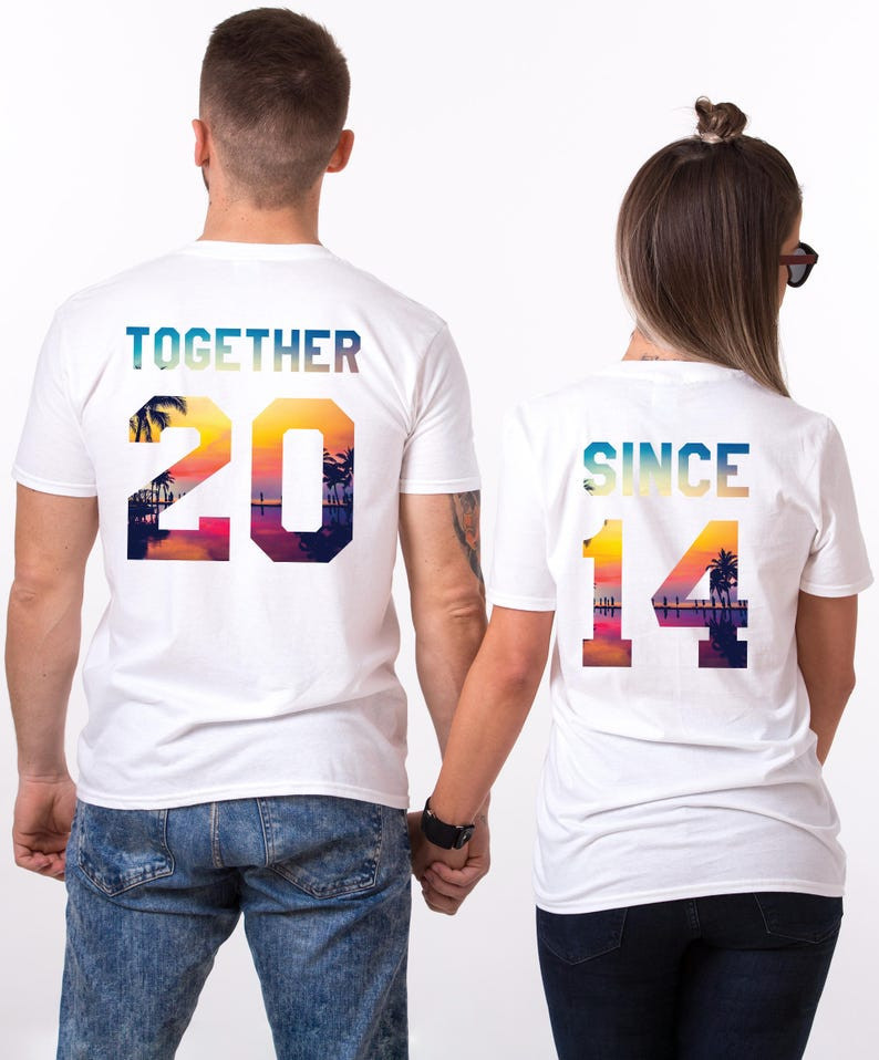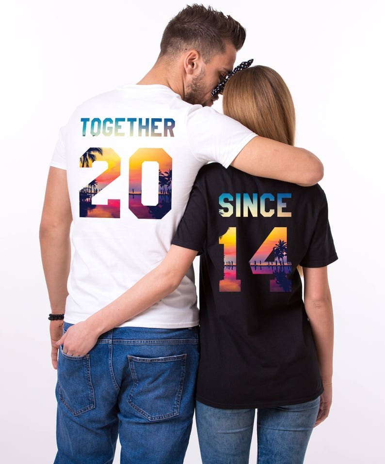 Together Since Sunset Beach Anniversary Matching Couple Valentine Unisex T-Shirt 2D #Kv