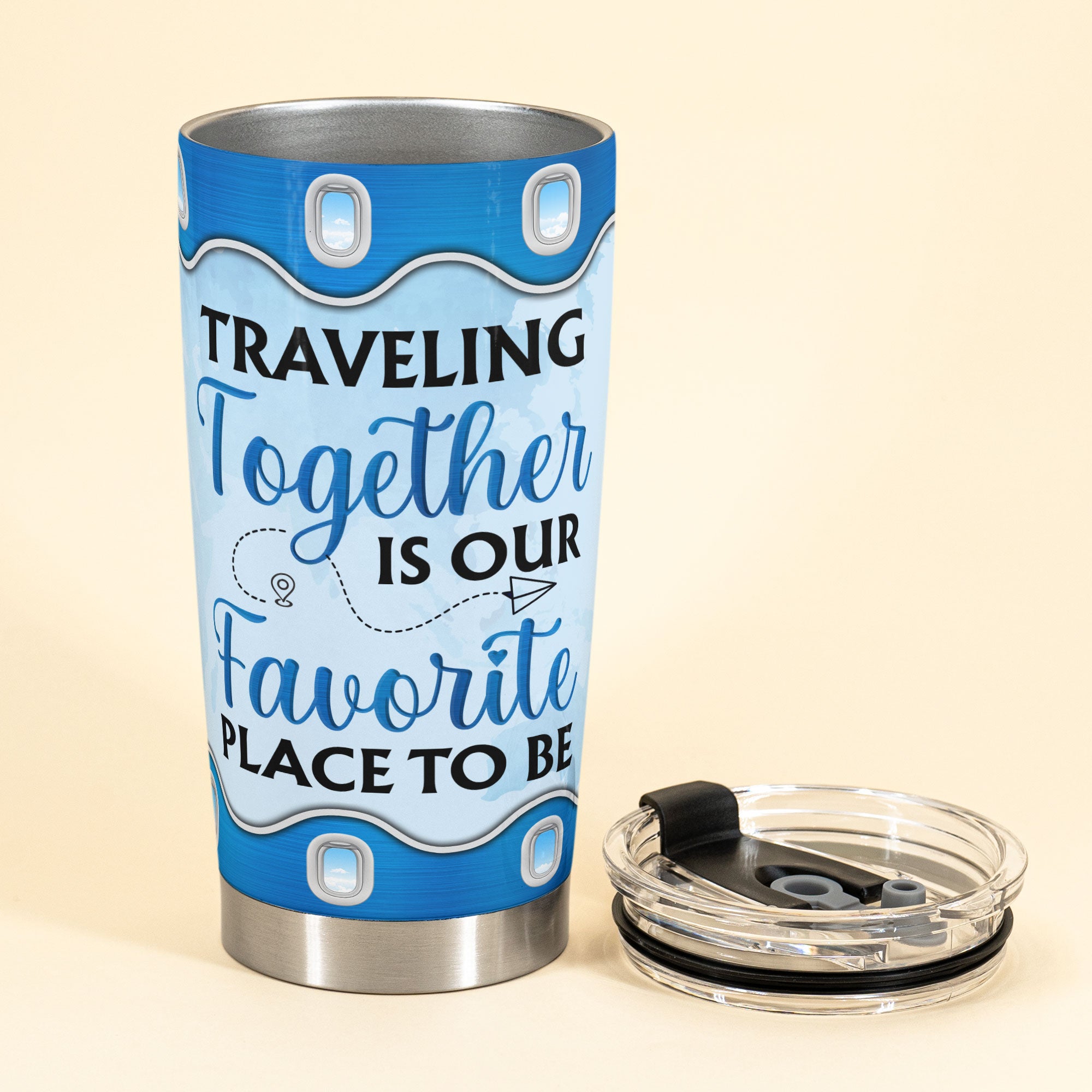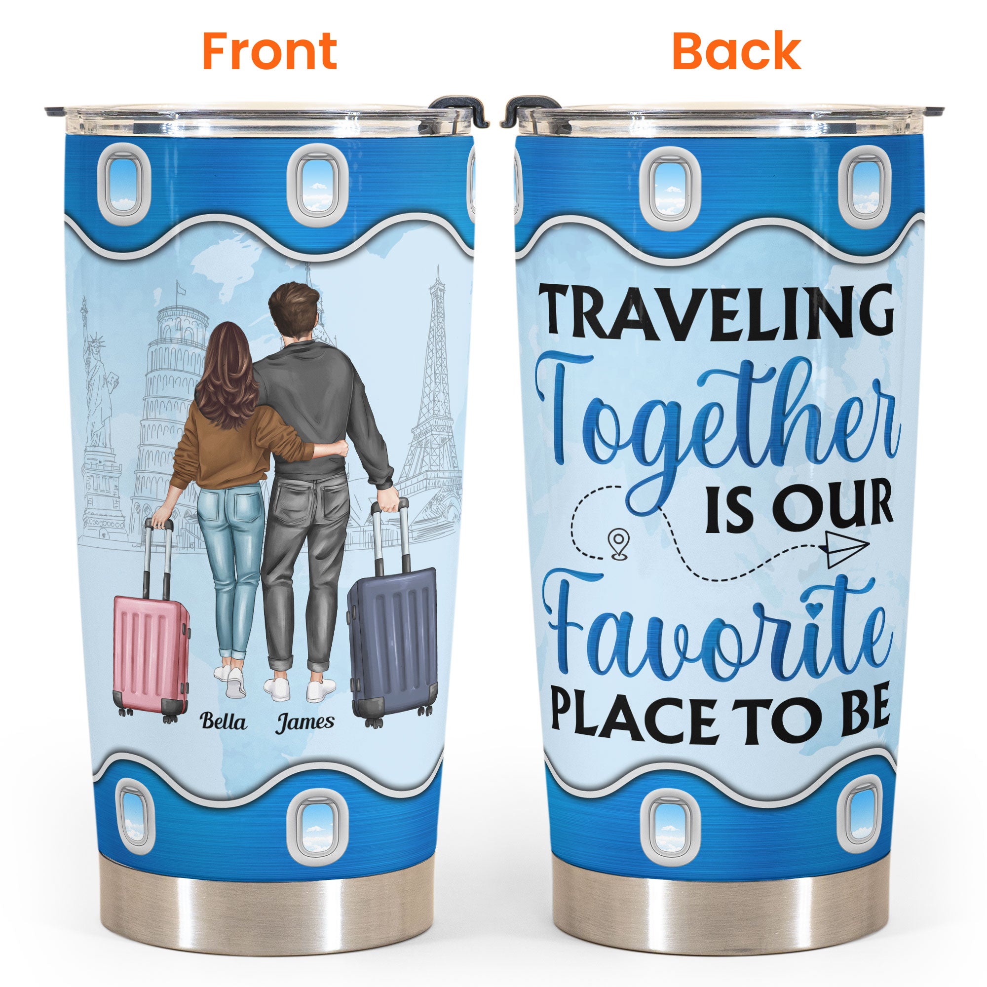 Traveling Together Is Our Favorite Place To Be – Personalized Tumbler Cup – Gift For Lover, Partner, Traveler Couple, Husband, Wife