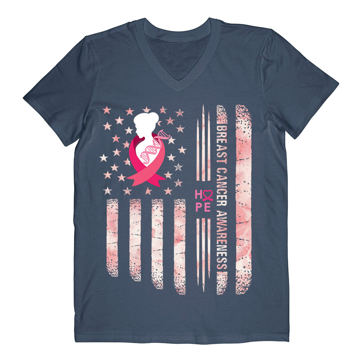 Tye Die American Flag Breast Cancer Awareness Ez05 1305 Men V-Neck T-Shirt