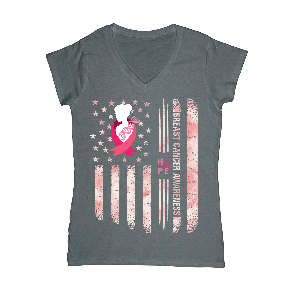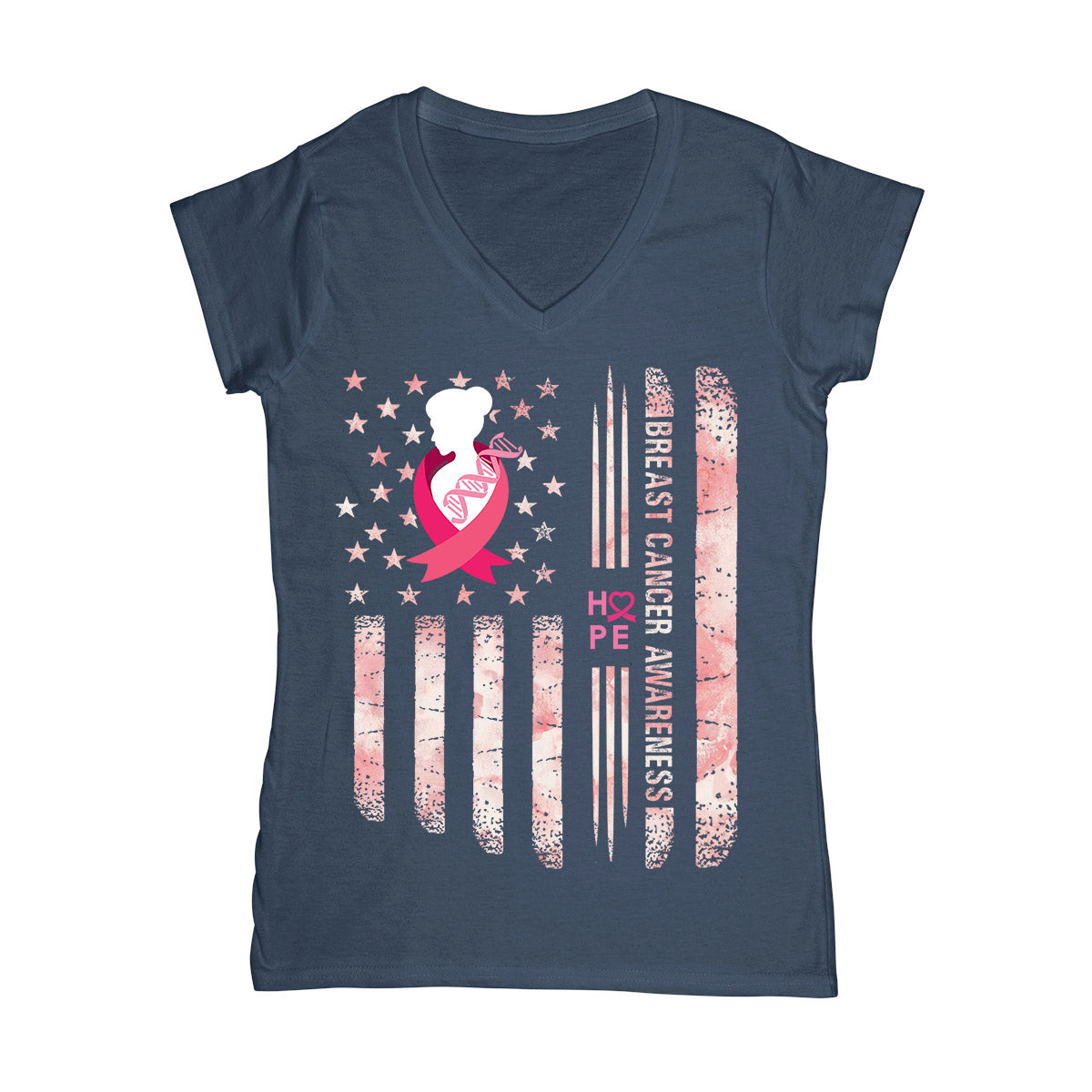 Tye Die American Flag Breast Cancer Awareness Ez05 1305 Women V-Neck T-Shirt