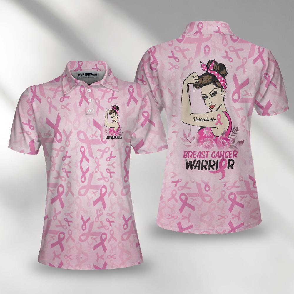 Unbreakable Breast Cancer Warrior Pink Breast Cancer Awareness Short Sleeve Women Polo Shirt