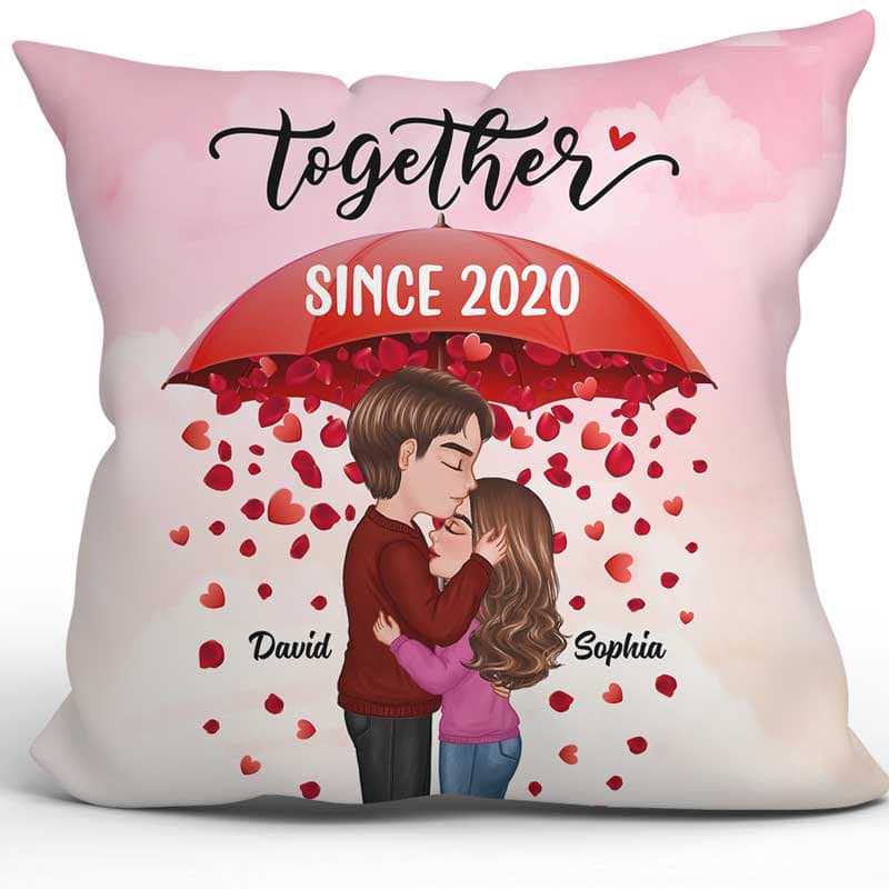 Under Umbrella Doll Couple Kissing Personalized Pillow (Insert Included)