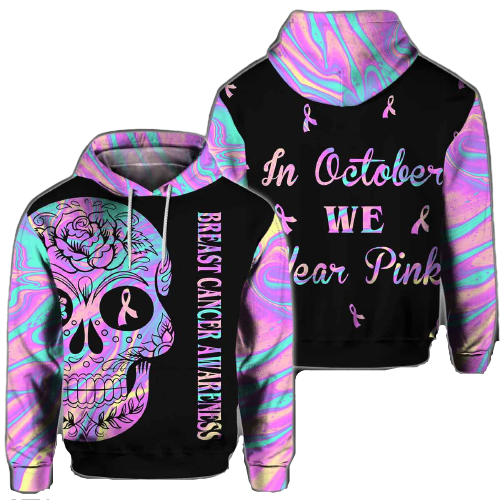 Unifinz Breast Cancer Hoodie In October We Wear Pink Skull Breast Cancer Awareness Hoodie 2022