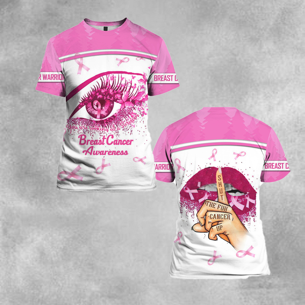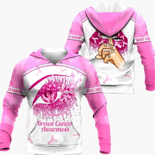 Unifinz Breast Cancer Shirt Breast Cancer Awareness The Eye Shut The Fck Up Cancer Sexy Lips Pink White Hoodie 2022