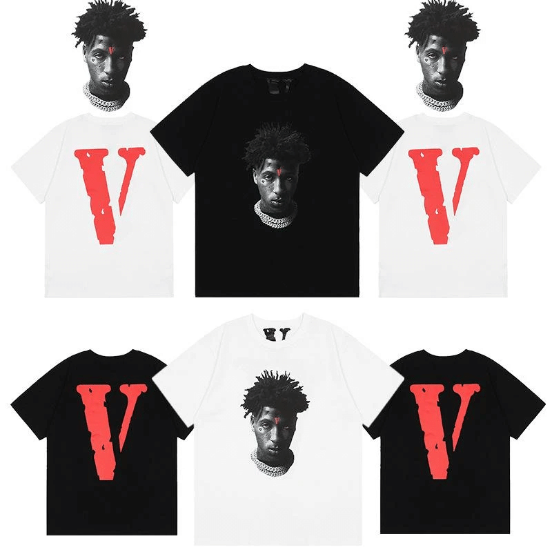 V Lone Shortsleeved Portrait High Street Loose Casual Men And Women Couple Round Collar Fashion Tee Printed Letter Tshirt Vlone
